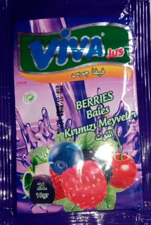 Descripción: Refresco marca VIVA de sabores mixtos, paquete de 15g.